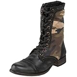 It's hard to resist the allure of this Halseyy boot from Steve Madden. The leather and canvas upper features a camouflage-inspired design, lace-up closure and side zipper for an intriguing boot. A low, sturdy heel ensures this is a comfortable boot. Tuck skinny jeans into this on-trend yet classic boot and add a leather jacket on top to complete the look.