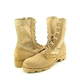You can count on the Altama 5853 8-inch Panama boots to complete your mission. Features a durable suede and cordura upper with a nylon-coated aluminum speedhook/eyelet lacing system and instep drainage vents. A removable, cushioned insole and an injection PVC midsole enhances shock absorption while maintaining stability. The Panama lug outsole ensures reliable traction and durability."ALTAMA 5853 Desert Vulc Boot Combat Work Shoe Beige Men" Feature